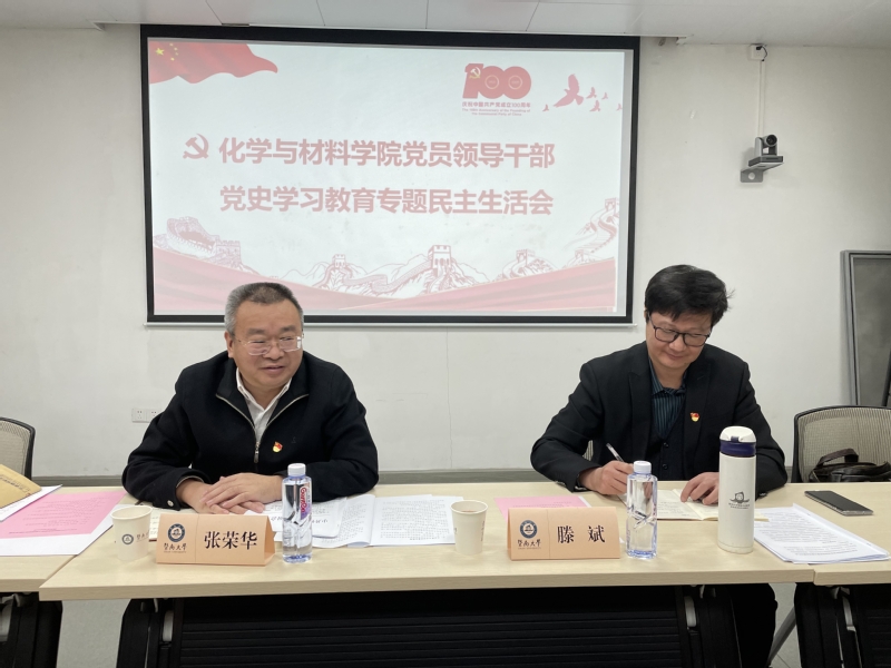 2022年1月12日上午,公司党委在超分子配位化学研究所会议室召开了党员领导干部党史学习教育专题民主生活会,公司副董事长张荣华,校纪委委员、国际商公司党总支书记滕斌莅会指导,公司领导班子成员党委书记邵桂珍、经理兼公司党委副书记李丹、党委副书记兼公司办公室主任陈文举、副经理李红、陈填烽、周小平参会,公司组织员曾希列席。会议由邵桂珍主持。