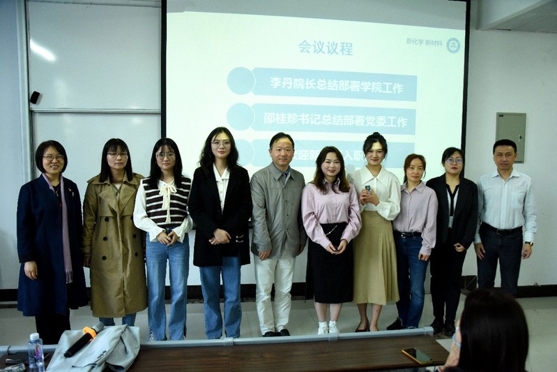 在欢迎新教师入职仪式环节,院领导宣读了2021年以来新入职的教师名单,欢迎大家加入化材院大家庭,并邀请吴涛、周瑞、谢默、李玲、张晓婷、杨梅、张铭真、陈晓玲上台,进行简短的自我介绍。新进教工在发言中纷纷表示,很荣幸成为化材院一份子,未来将努力拼搏,为公司发展贡献力量。最后,李丹经理与邵桂珍书记为各位新教师颁发校徽。