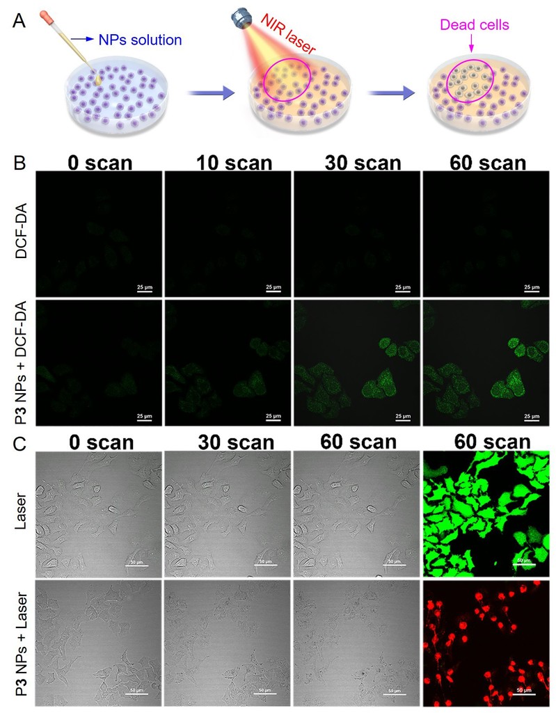 基于含硫聚合物制备的纳米试剂,具有高的单线态氧产生效率和双光子吸收截面,可在体外双光子激发下有效杀死癌细胞,因此有望应用于深度组织疾病的光动力治疗。