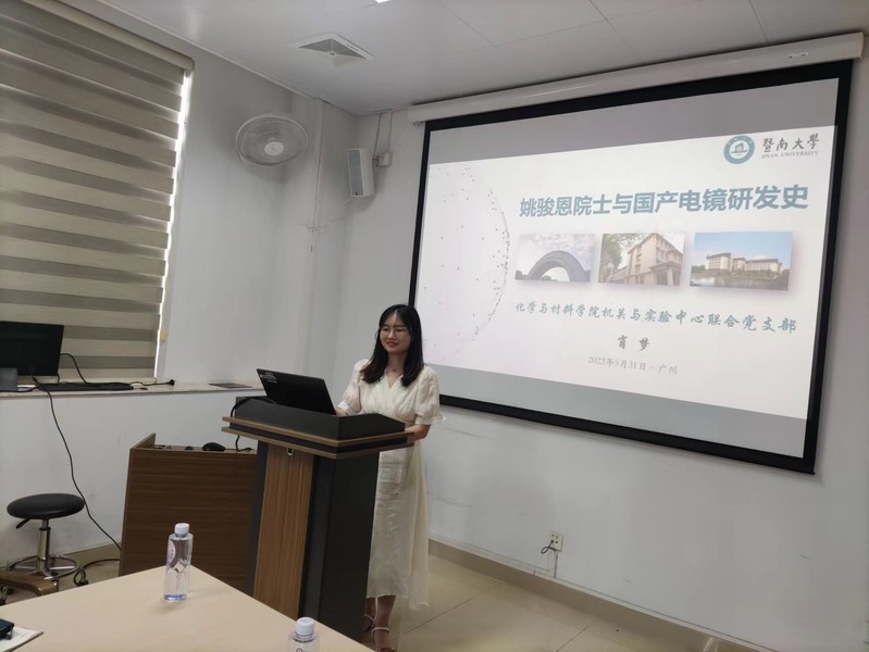 支部副书记肖梦与支部成员分享了《姚骏恩院士与国产电镜研发史》。介绍了国产电镜的主要开拓者姚骏恩院士在战乱中曲折求学并最终投身国产电镜事业实现自主研发扫描电镜的坎坷故事,分析了当前我国电子显微镜行业的发展简况。她介绍说,公司作为理工科公司,在基础科研及学科发展过程中,应以科学家精神为引领,肩负起历史责任,开拓创新,砥砺前行,为实现中华民族伟大复兴作出更大贡献。