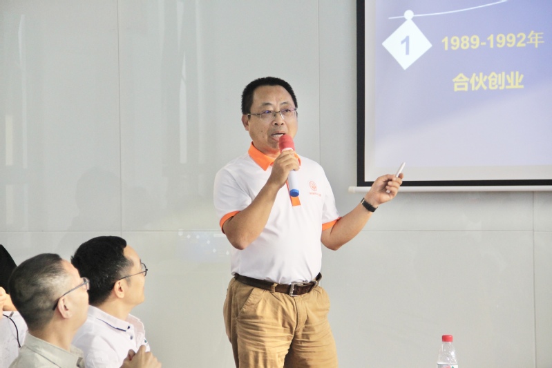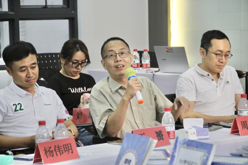 化材院员工联谊会常务副会长、1981级员工杨伟明分享了自己化工企业生产经营的心路历程,从1989年至今,经历合伙创业、稳定发展、多元发展、回归化工主业、上市发展五个阶段,他总结道:要勇于迈出第一步,利用专业知识进行创业,做自己擅长的事业,搭建最信得过的团队;搭建新资本平台,助力企业发展。