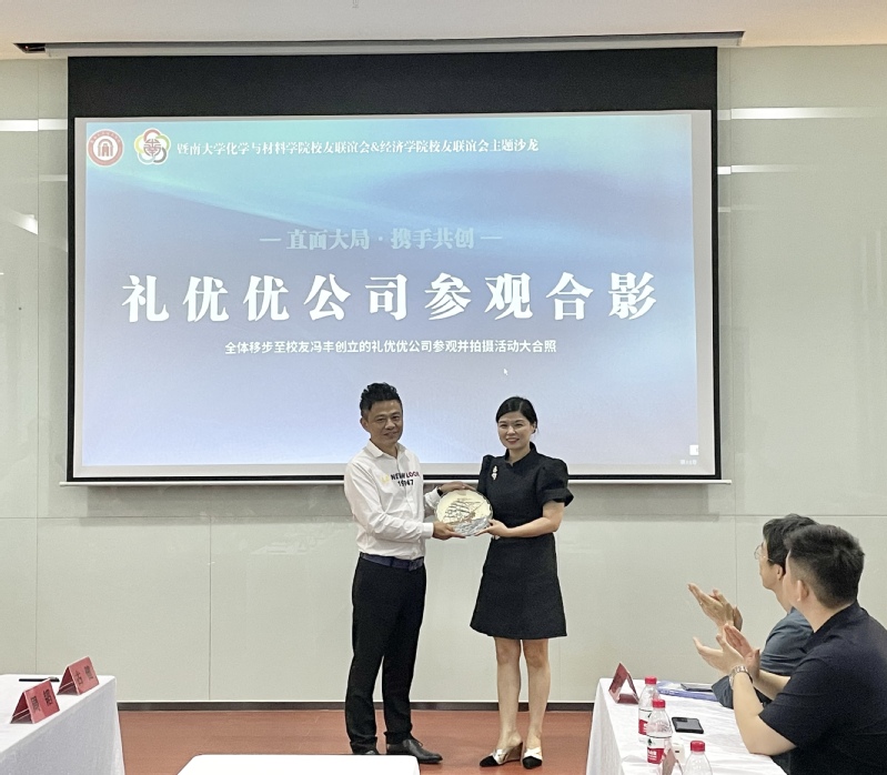 活动接近尾声,广州礼优优网络科技有限公司董事长、化材院员工联谊会常务副会长、93级应用化学员工冯丰详细介绍了礼优优公司的概况、发展历程及主营业务,并对本次活动进行总结发言。他表示,此次化材院与经济公司员工联谊活动意义重大,希望能够借此机会加强各公司员工联谊会的联系,搭建公司与员工企业之间的合作平台,共同推动公司和员工企业的发展。最后,冯丰为经济公司、球速体育赠送了专属定制的精美礼品。