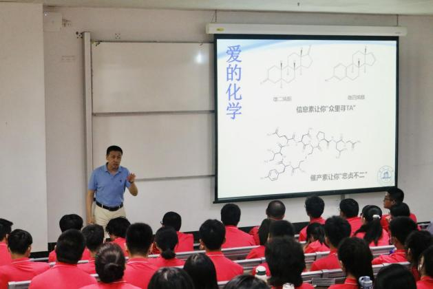 他还讲述了“美的化学”,从“大力神杯”的结构合成到蒙娜丽莎原画的化学无损鉴定,从美丽的化学分子结构到实际建筑应用……让同学们了解到化学与艺术的紧密联系;从巧克力中含有的苯基乙胺让人一见钟情,到多巴胺的分泌让人欲罢不能,提醒同学们在恋爱中学会培养责任感。密切结合日常生活、且幽默生动的案例分享,让同学们沉浸其中,赢得了同学们阵阵掌声。