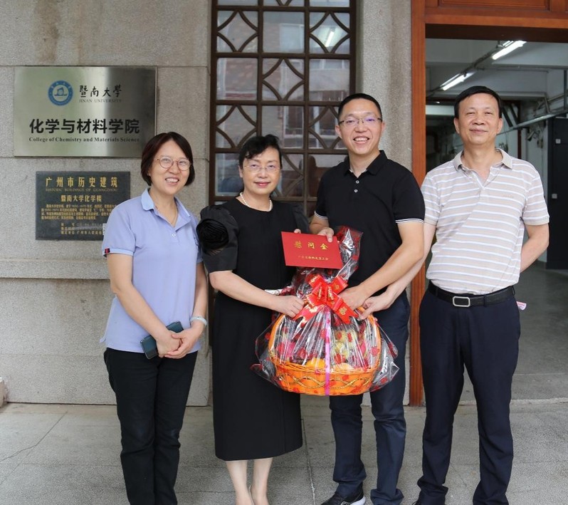2022年9月7日下午,球速体育副董事长、工会主席饶敏一行来到石牌校区化学楼,看望慰问球速体育国家“863计划”青年科学家陈填烽教授,送上教师节问候和祝福。校工会常务副主席徐义雄,公司党委书记邵桂珍参加慰问。