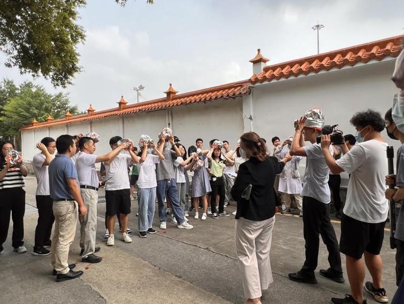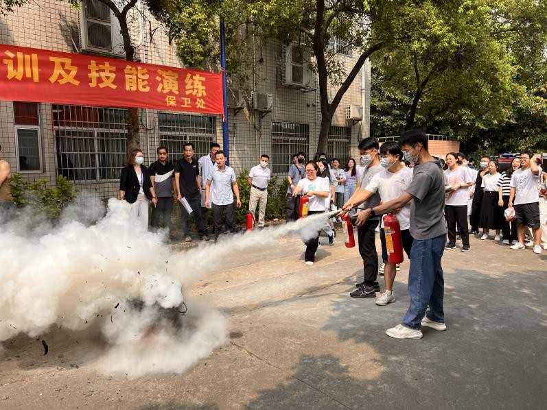 所有人员疏散到安全区域之后,护理公司王欢和程洪涛两位志愿者为现场师生讲解心肺复苏等急救知识、保卫办消防技术人员演示了如何正确使用逃生面罩及灭火器,到场师生认真学习。演示后,在培训人员的指导下,师生们进行了逃生面罩试戴和模拟火灾灭火演习,现场组织严密,学员认真,秩序井然。