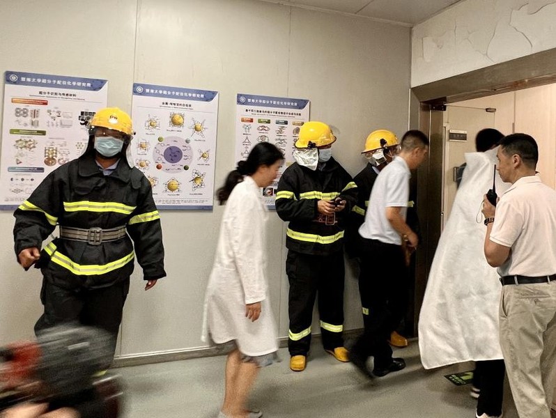 为进一步提升实验室安全管理水平,提高公司师生应对突发事件,特别是实验室安全事故的应急处置能力,9月21日上午,公司联合实验室与设备管理处、保卫处在超分子配位化学研究所开展了实验室安全事故应急演练活动。实验室与设备处副处长饶星、技术安全科科长黄小勇及保卫处刘俊岭科长、庞辉亮科长、吴旭老师等出席本次演练。球速体育经理兼超分子配位化学研究所安全负责人李丹、副经理兼实验室安全负责人周小平、实验中心常务副主任周艳晖、副主任廖小建以及超配所师生80余人参加了演练。