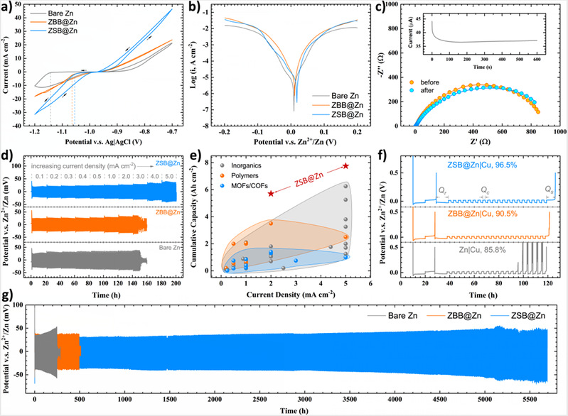 图2. 金属锌负极修饰SEI膜前后的电化学性能对比