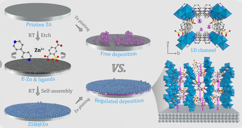 水系锌离子电池因其价格低廉、环境友好、安全性高等众多优点,特别适合于大规模储能和可穿戴设备领域,可与锂离子电池应用场景互补。但是,金属锌负极较差的可逆性严重制约着水系锌离子电池的实际应用。与金属锂负极不同,金属锌负极在水系电解液中无法形成致密、稳定的固态电解质界面(SEI)膜。因此,引入人工SEI膜是提高金属锌负极可逆性的有效手段。