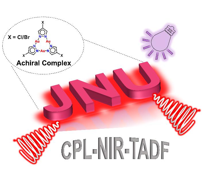 图1. 非手性环三核Cl/Br-Au圆偏振近红外TADF示意图