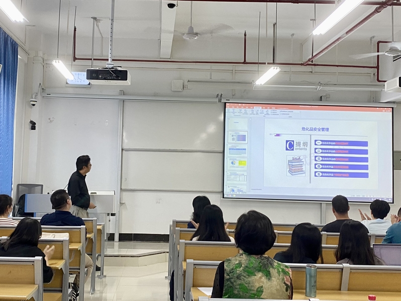 廖小建以“危化品安全管理”为主题,详细介绍了高校实验室危险化学品的常见问题、主要危害、相关安全知识以及相关安全事故等等,全面解析了危险化学品管理的风险点,介绍了实验室危化品采购和管理的基本要求、气体钢瓶的基本知识等等,强调了实验室安全专员应多了解安全基础知识,带领课题组同学提高安全意识,创造良好的科研学习工作环境。