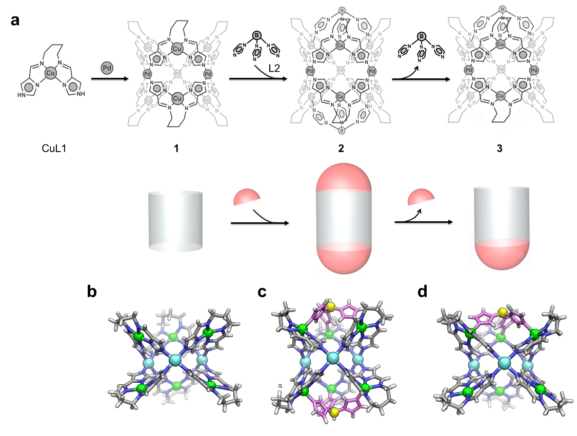 金属有机胶囊(MOC)具有囊状结构和局域空腔,在催化、分离、传感、稳定活性物种,以及药物输送等领域有重要的应用前景。MOC的合成是由主要配位键驱动的。配位键的动态性质允许MOC结构在外部刺激下发生转变。然而,一部分转化是不可预测和无法控制的,这给MOC的实际应用带来了障碍。而后合成修饰(PSM)策略为发展精准合成具有确定结构的MOC带来了新的契机。